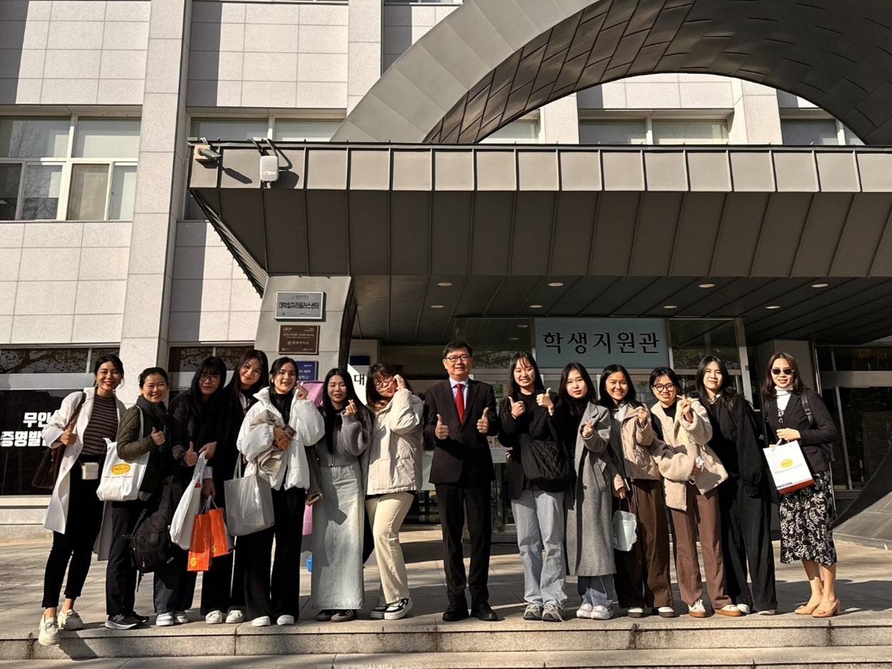 Nhân chuyến công tác Hàn Quốc vào tháng 11/2023, Hiệu trưởng TS. Nguyễn Anh Tuấn đã thăm hỏi 11 sinh viên HUFLIT đang trao đổi tại WKU.