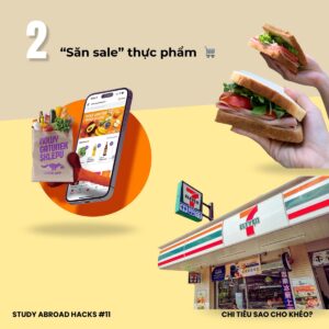 • Các cửa hàng tiện lợi như 7-Eleven hoặc FamilyMart thường giảm giá thực phẩm chế biến sẵn trong khung giờ tối từ 20h đến 23h.