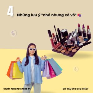 • Mỹ phẩm và sản phẩm chăm sóc cá nhân: nên chuẩn bị từ Việt Nam nếu đã quen dùng, vì giá tại nước ngoài có thể cao hơn và chưa chắc phù hợp.