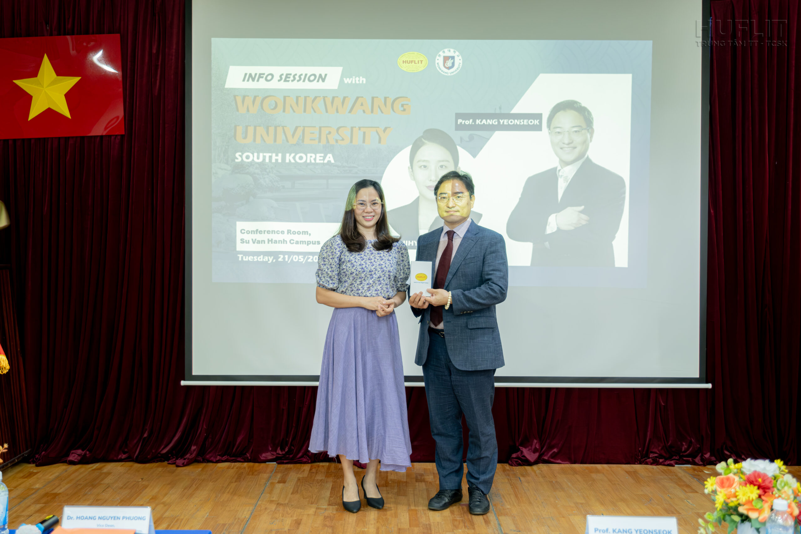 Thông tin thêm, GS. Kang cho biết, tỉnh Jeonbuk, nơi tọa lạc của Đại học Wonkwang, đã trở thành “Tỉnh tự trị đặc biệt”. Từ năm nay, WKU sẽ kết hợp với các doanh nghiệp để xúc tiến các chương trình đảm bảo cho sinh viên có thể làm việc tại Hàn sau khi tốt nghiệp. Với chính sách này, GS. Kang hy vọng những sinh viên Việt Nam xuất sắc sẽ đến với WKU để nhận được nền giáo dục ưu tú. Đặc biệt, WKU luôn dành sự ưu tiên cho sinh viên HUFLIT, trường đại học đối tác quan trọng nhất của WKU tại Việt Nam. Có thể nói, đây chính là cơ hội “vàng” dành cho những sinh viên HUFLIT có mong muốn học tập và làm việc tại Hàn Quốc trong tương lai.