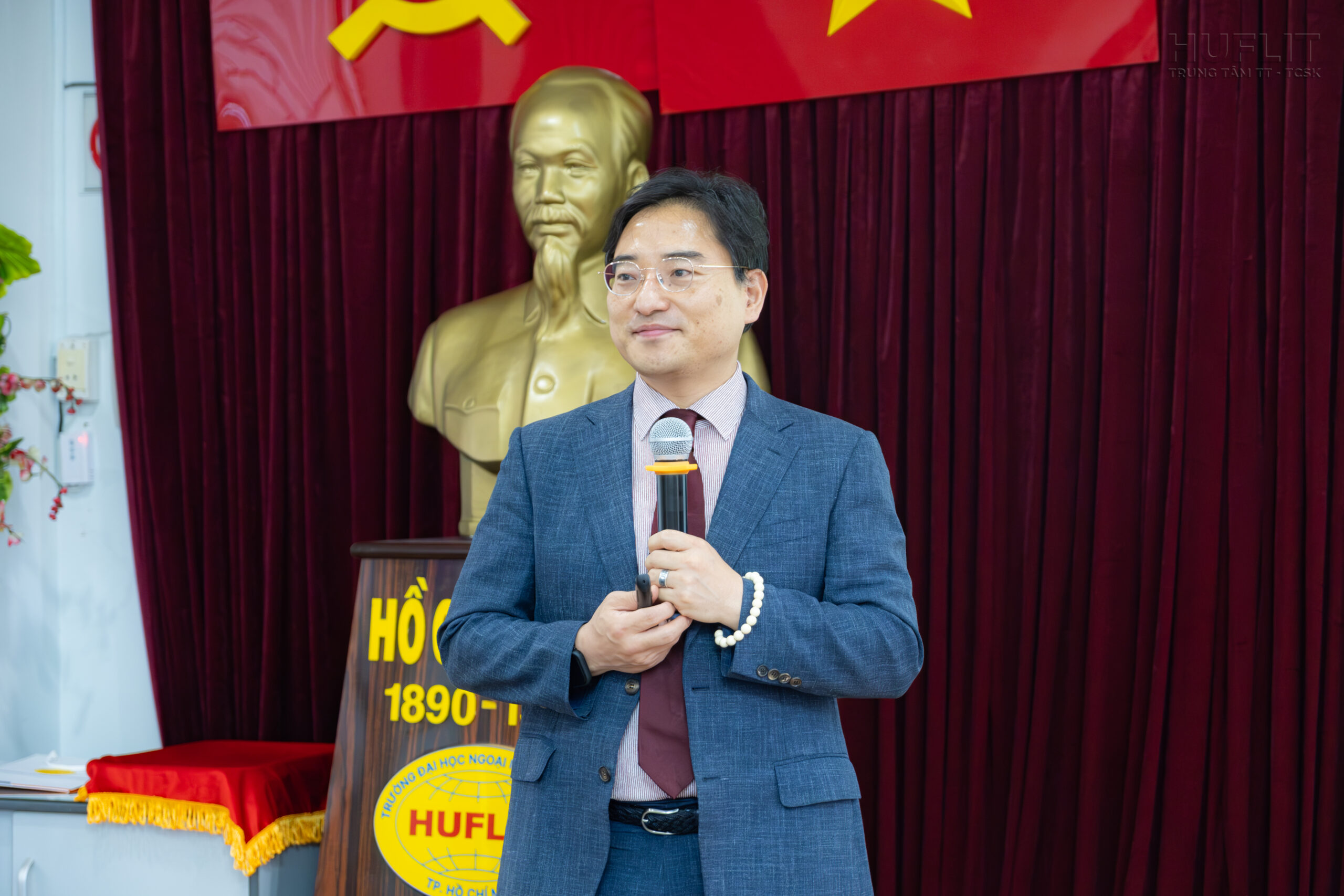 Trong lần trở lại này, GS. Kang Yeon Seok bày tỏ: “Đây là lần thứ ba tôi đến thăm HUFLIT. Trong chuyến đi lần này, tôi hy vọng sẽ mang đến nhiều cơ hội du học cùng với các chính sách học bổng ưu đãi dành riêng cho sinh viên HUFLIT tự tin chinh phục giấc mơ du học Hàn Quốc của mình”.