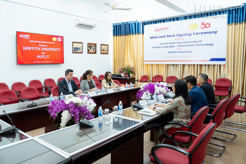 Kể từ khi biên bản hợp tác giữa HUFLIT và trường Đại học Griffith được kí kết trực tuyến vào khoảng cuối năm 2021 trong bối cảnh dịch bệnh COVID, cả 2 trường đã và đang trên đà xây dựng mối quan hệ giữa hai bên ngày càng vững mạnh hơn qua những buổi trao đổi.