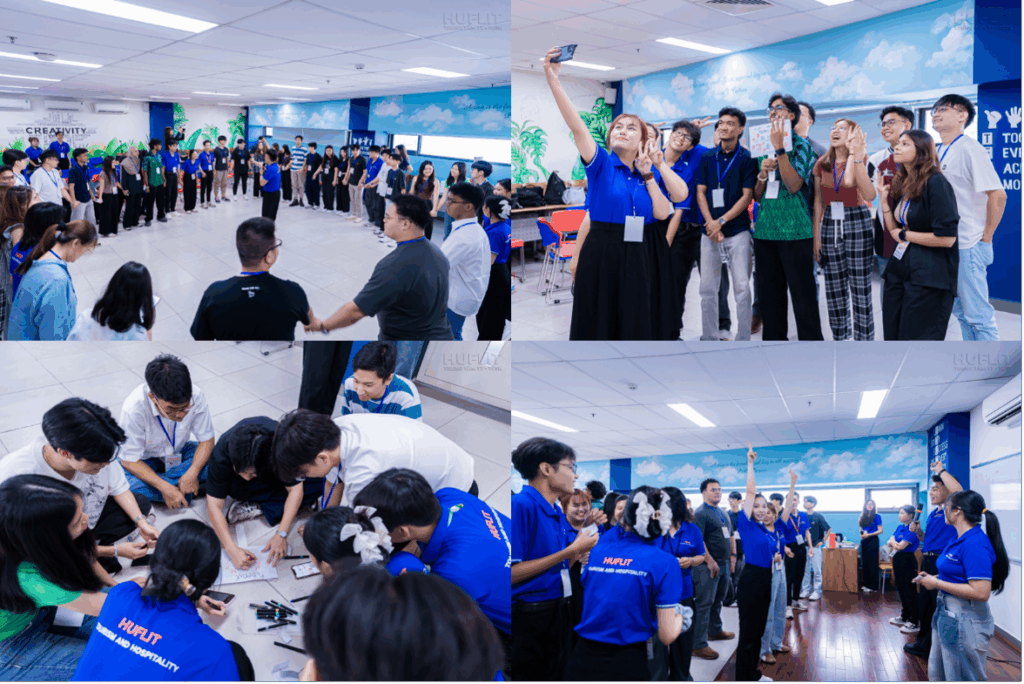 Các trò chơi gắn kết sau đó đã thực sự xóa nhòa mọi khoảng cách. Tiếng cười, sự cổ vũ và tinh thần đồng đội đã kết nối tất cả mọi người, biến những người xa lạ thành bạn bè. Qua đó, sinh viên HUFLIT cũng cho thấy kỹ năng tổ chức sự kiện, quản lý đám đông và khả năng hoạt náo tuyệt vời – những tố chất không thể thiếu của sinh viên Du lịch – Khách sạn.