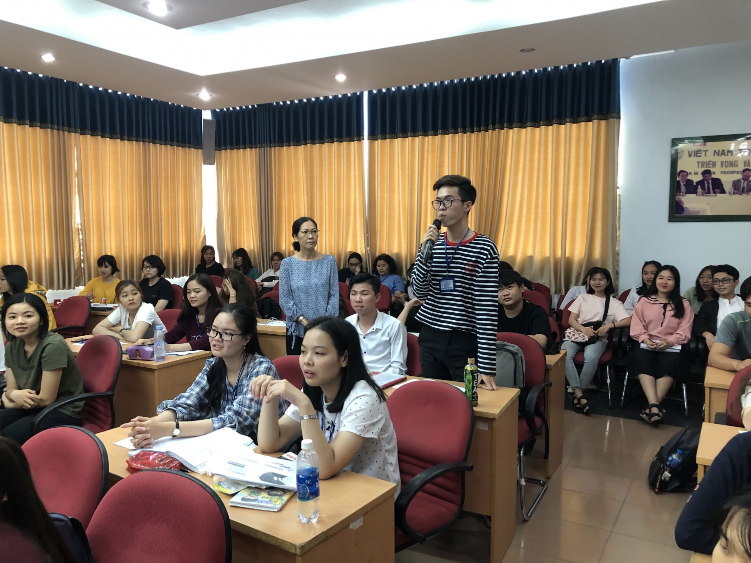 Không chỉ lắng nghe chia sẻ từ diễn giả, các bạn sinh viên còn được giao lưu, đặt câu hỏi cho chuyên gia về những vấn đề bản thân còn băn khoăn khi làm việc trong môi trường doanh nghiệp Nhật Bản và đã được thầy Okita giải đáp tận tình.